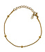 Prachtige goudkleurige verfijnde armband. Aan de armband zitten vier kleine goudkleurige balletjes. Het zijn balletje en geen kralen. Ze blijven dus vast op een plek zitten en zijn daardoor altijd mooi zichtbaar. Mooie subtiele armband die ook nog eens comfortabel draagt door de verstelbare sluiting.