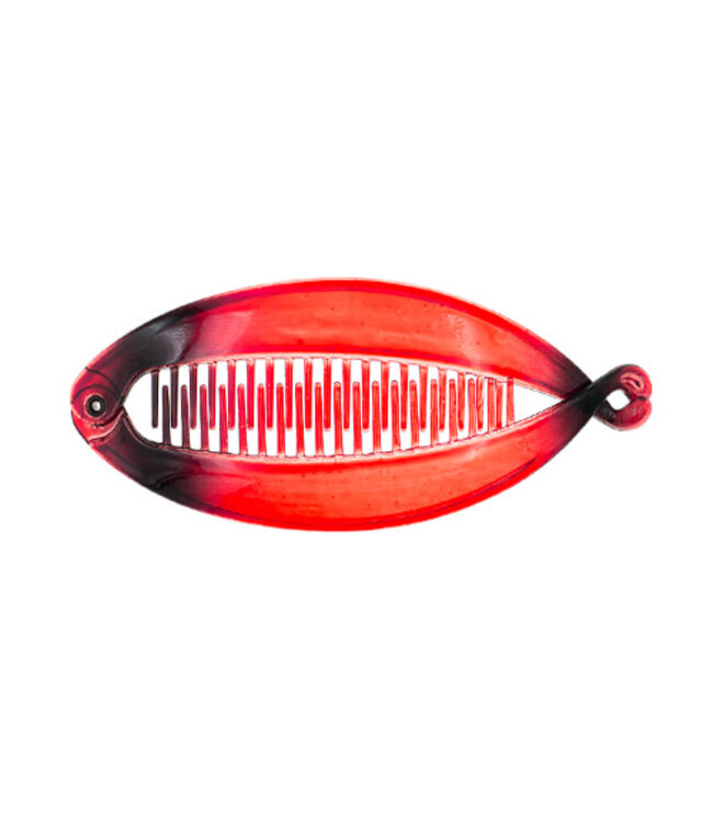 Deze transparante rode bananenklem heeft een mooie glans en is in meerdere kleuren verkrijgbaar. Afhankelijk van je haarlengte en dikte, zet je al je haar (of gedeeltelijk) vast. Zo hou je je haar uit je gezicht. Op de zwart wit illustratie bij dit product, kun je zien hoe gemakkelijk je de bananenklem in en uit het haar kan halen.