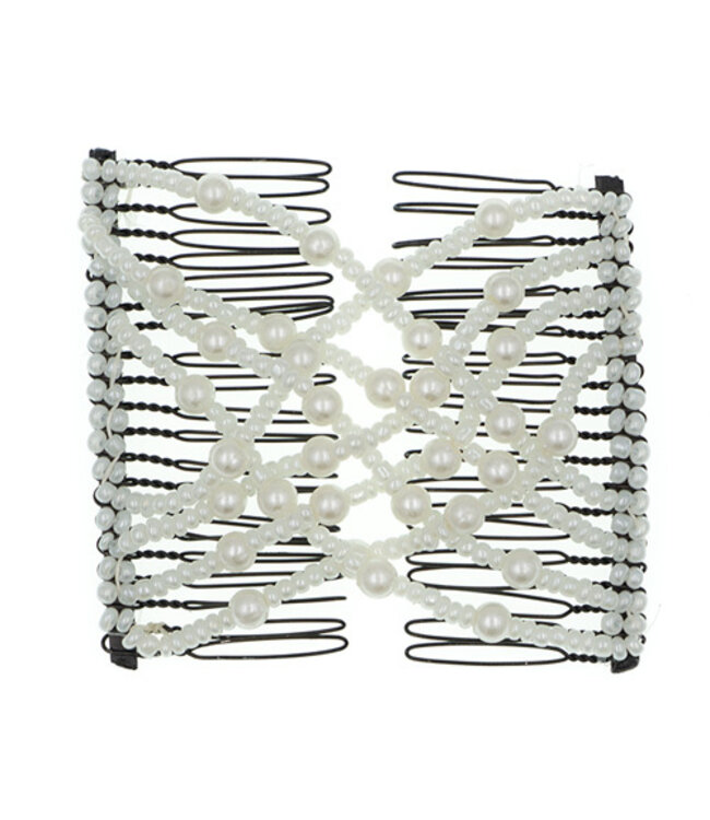 Mooie EZ comb met EZ comb parels crèmekleurig parels. Met de EZ comb (kam) creëer je heel gemakkelijk verschillende haarstijlen. Stop simpelweg één kant van de EZ Comb in je haar. Trek deze vervolgens rondom je haar en stop het aan de andere kant voor een nieuwe haarstijl! De EZ comb zit stevig en comfortabel in het haar.