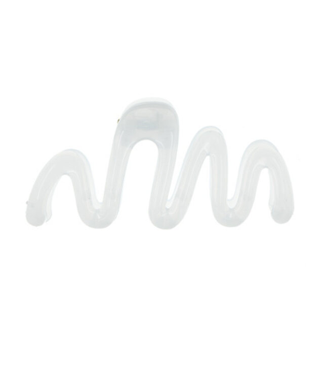Deze haarklem heeft mooie ronde speelse vormen. Het lijken een soort golven. Door de gestroomlijnde vormgeving heeft deze haarklem de naam ‘go with te flow’ gekregen. Want soms is dat het beste om te doen. Doordat deze haarklem een effen neutrale kleur heeft, straalt deze rust uit. Ook heeft deze haarklem een mooie glans. Deze haarklem is van kunststof gemaakt en draagt daardoor licht en comfortabel in het haar.