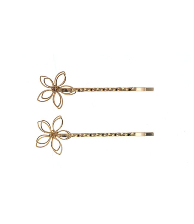Hoe lovely zijn deze Goudkleurige haarschuifjes met bloem? De bloemen zijn van fijn ijzerdraad gemaakt, dit geeft een speels effect. Door de bloemen is je haar zichtbaar. Het is een set van twee, draag je ze beide tegelijk of apart? Draag je ze in opgestoken haar of in los haar? De keus is aan jou!
