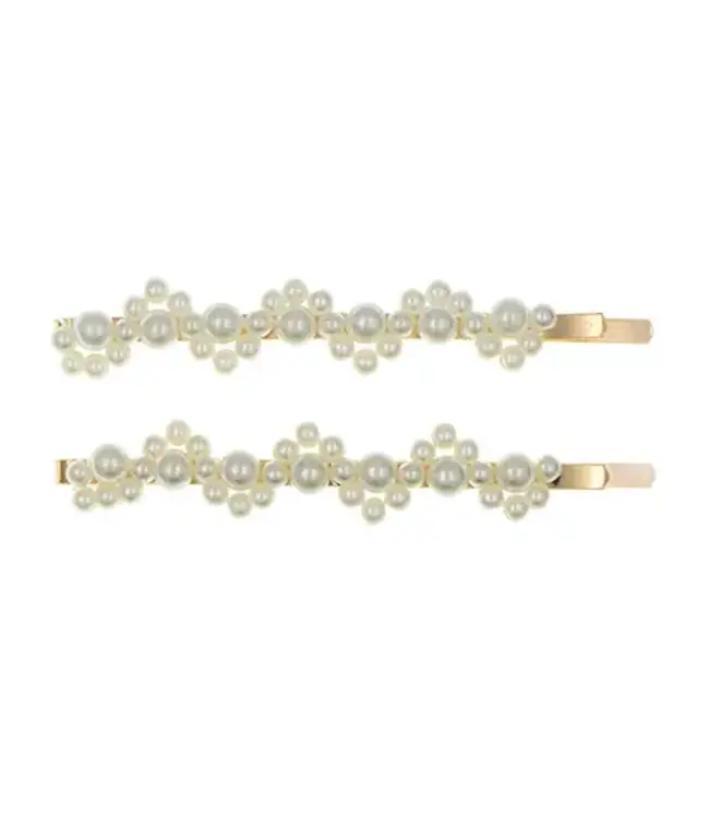 - Kleur: goudkleurige haarschuifjes met crèmekleurige parels.