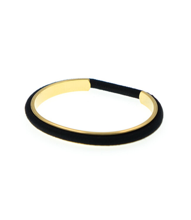 Om deze luxe goudkleurige armband zit een haarelastiek. Heb je het haar los en wil je het haar vast, dan heb je altijd een haarelastiek bij de hand! Doordat het haarelastiek om de armband zit knelt het niet om de pols en ziet het er trendy uit. Hou je armband langer mooi door te voorkomen dat deze in aanraking komt met vocht. Dus doe de armband af wanneer je gaat slapen, douchen, zwemmen enz. Varieer met kleur elastiek zodat de armband matcht bij iedere outfit!