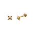 Prachtige verfijnde goudkleurige oorbellen. Deze oorbellen hebben aan de ene zijde een soort stervorm en aan de ander zijde een hartje. Zo zijn beide zijden van je oor mooi! Dus als iemand achter je staat ergens in de rij, zie je geen lelijk knopje maar een lief hartje. Deze oorbellen zijn subtiel dus je valt niet op maar geeft je ook wel net dat beetje extra.