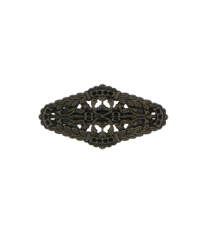 Prachtige kleine bronskleurige patentspeld. Deze patent speld is ruitvorming en is rijkelijk bewerkt met sierlijke bladvormige figuren. Door het kleine formaat is deze patentspeld gemakkelijk te verwerken in opgestoken haar of in het wat kortere/dunnere haar. De patent speld is gemakkelijk te openen en sluiten tussen duim en wijsvinger. Stevige patent speld maar licht qua gewicht. Daardoor voel je dit haaraccessoire bijna niet als je deze draagt. Door de kleur en vormgeving heeft deze patent speld een mooie vitage vibe!
