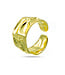 Deze goudkleurige ring heeft een mooie speelse ‘gedeukte’ afwerking. Mocht je deze ring een keer laten vallen dan hoef je je geen zorgen te maken dat er een deukje extra in komt. Dat zou dan niet opvallen. Sowieso hoef je je geen zorgen te maken om deuken. Want deze ring is gemaakt van RVS. Of terwijl roestvrij staal, echt kwaliteit dus. Mocht je willen weten hoe je deze ring het best kunt onderhouden, lees dan verder voor de onderhoudstips. Deze ring heeft een open achterzijde, dus qua pasvorm zit je altijd goed!