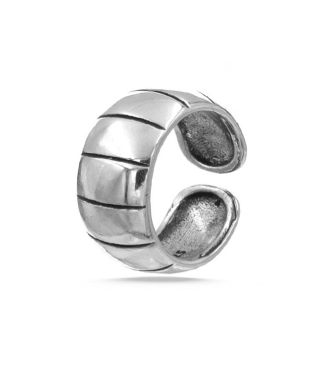 Mooie strakke zilverkleurige ring met strepen. Deze ring heeft een strakke stoere uitstraling. Door de rechte lijnen en het brede model van deze ring. Weet je niet wat je ringmaat is? Geen probleem bij deze ring. Deze ring heeft een opening aan de onderzijde. Daardoor is het een ‘one size fits all’ ring. Deze ring is van sterling zilver (925) gemaakt, lees verder oor de tips voor onderhoud.