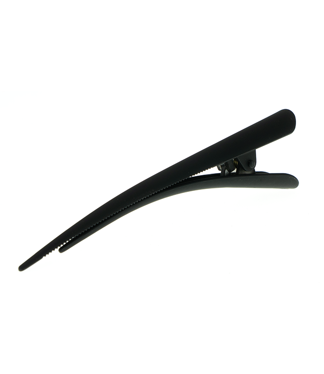 Zwarte duckklem in basic vormgeving met een matte afwerking. Deze duckklem is bijna volledig van kunststof gemaakt. Waardoor deze licht is in gewicht en daardoor comfortabel in het haar draagt. Aan de binnenzijde van deze duckklem zitten kleine tandjes, deze houden je haar extra goed op z’n plek. Door de effen kleur van deze duckklem, kun je deze gemakkelijk combineren met kleding met drukke patronen, ideaal dus!